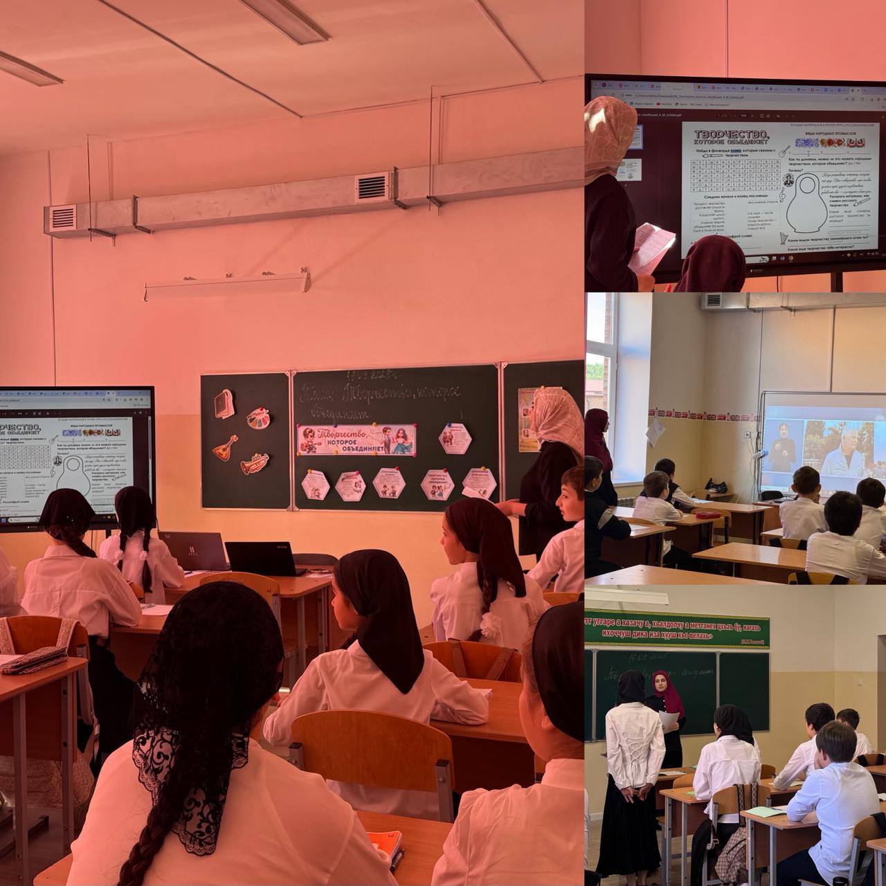 РАЗГОВОРЫ О ВАЖНОМ «Творчество, которое объединяет»Основные задачи урока заключались в раскрытии творческих способностей каждого ученика, создании условий для коллективного взаимодействия и взаимопомощи, понимании важности командной работы и взаимоподдержки.Была проведена беседа о видах искусства и их влиянии на обществоА также : – Совместное создание картины или музыкального произведения. – Проведение мастер-класса по танцам или театральному искусству. - Представление результатов творческой деятельности. - Обмен впечатлениями и рефлексия опыта сотрудничества