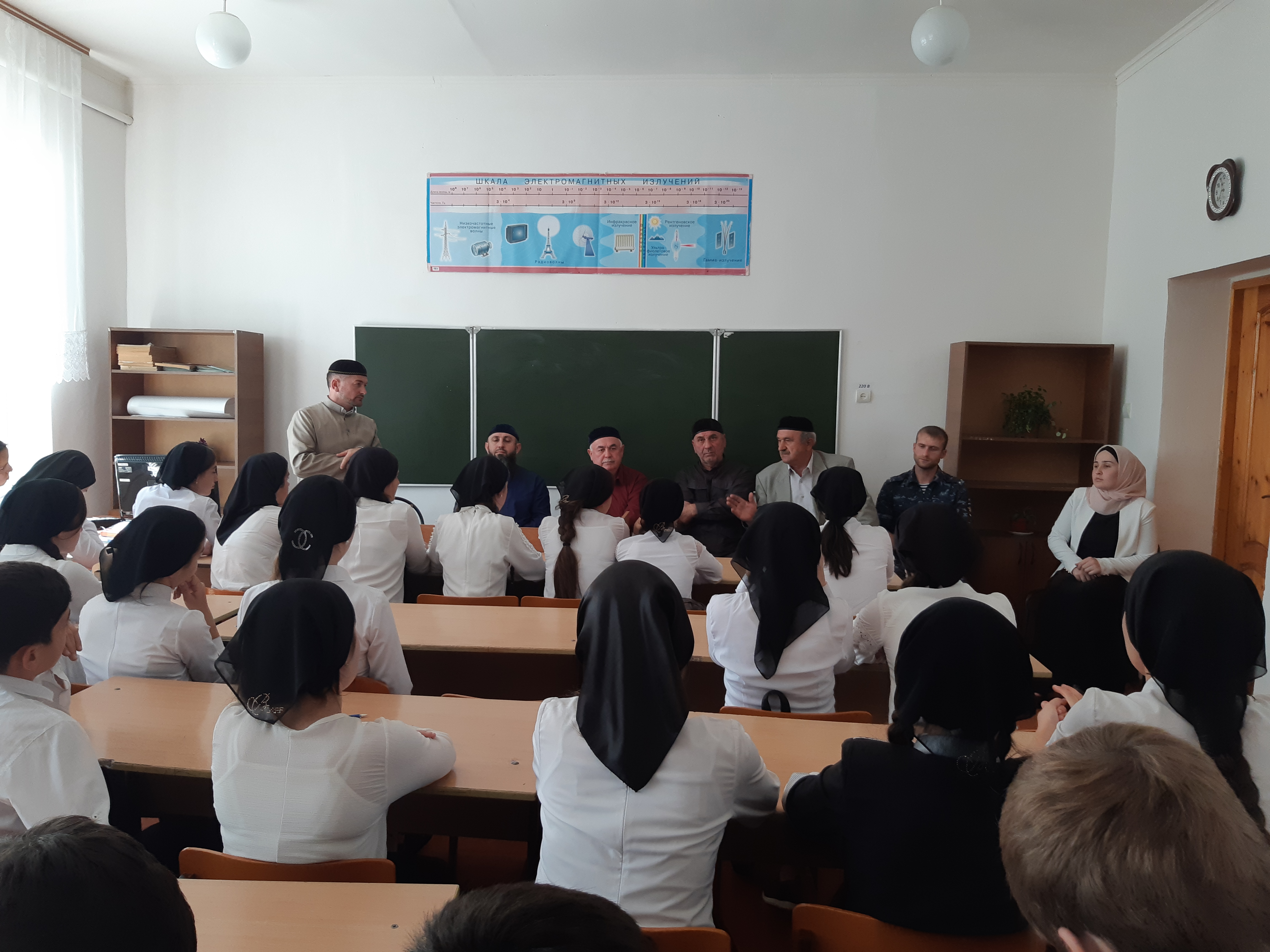 13.09.2018Кадий Веденского района Арби Джафаров совместно с Духовником Чагаевым Ваха-Али и представителями КДН провели профилактическую беседу с учащимися МБОУ "Окятбрьская СОШ" в рамках реализации Единой концепции духовно-нравственного воспитания и развития подрастающего поколения республики.